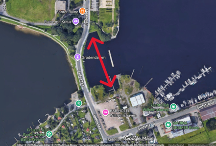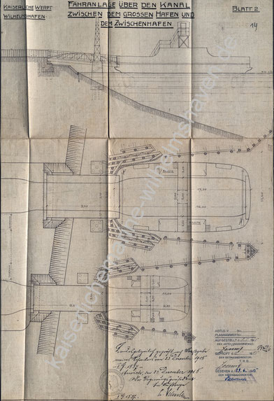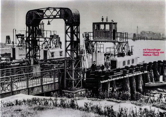 Mitte Oktober 1912 legte die Kaiserliche Werft dem preußischen Regierungspräsidenten von Aurich - Wilhelmshaven war seinerzeit Teil des Kreis Wittmund im Regierungsbezirk Aurich - einen detaillierten Plan vor, um "zur Überleitung des Verkehrs im Straßenzuge von der Deichbrücke zum neuen Seedeich zwischen dem Großen Hafen und dem Zwischenhafen eine Schwebefähre zu errichten".